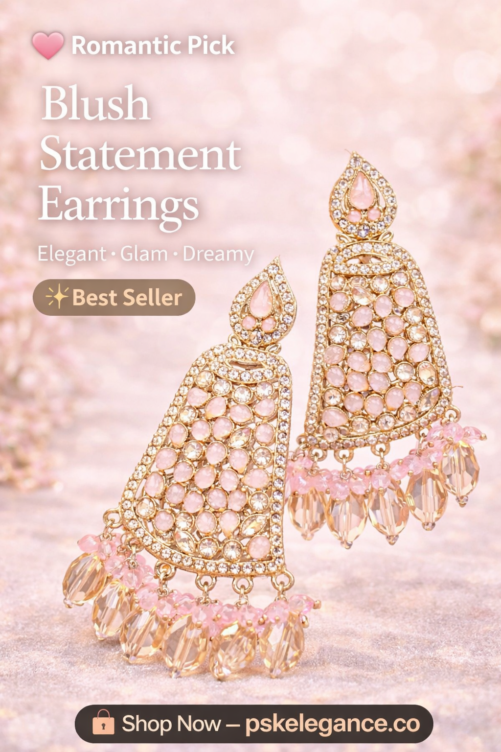 PSK ELEGANCE Gold Kundan Peacock Jhumka Earrings | Pearl Drop Statement Ethnic Jewelry