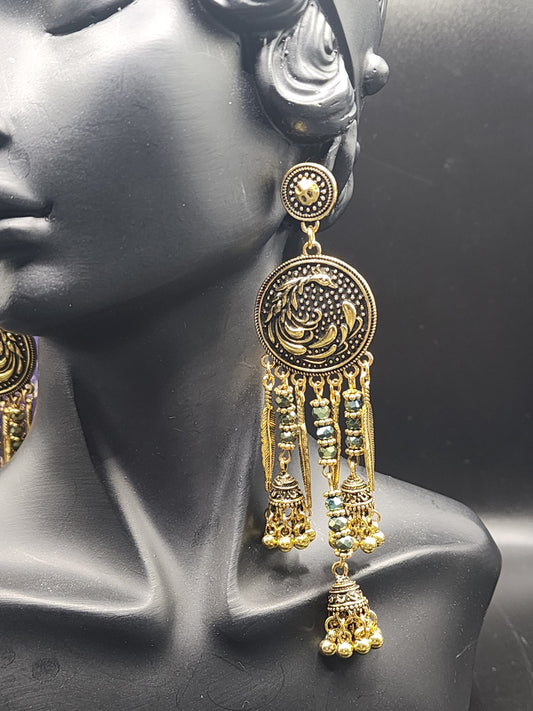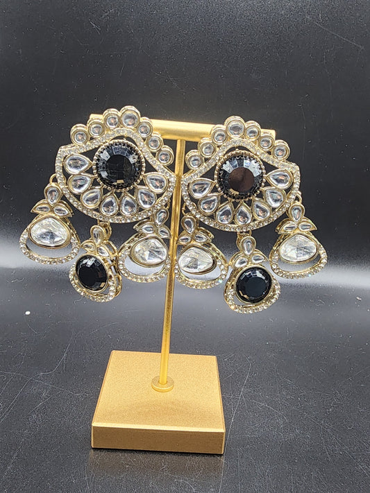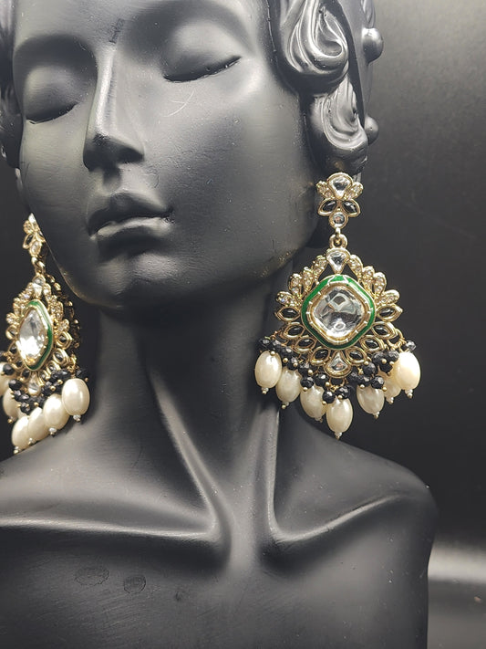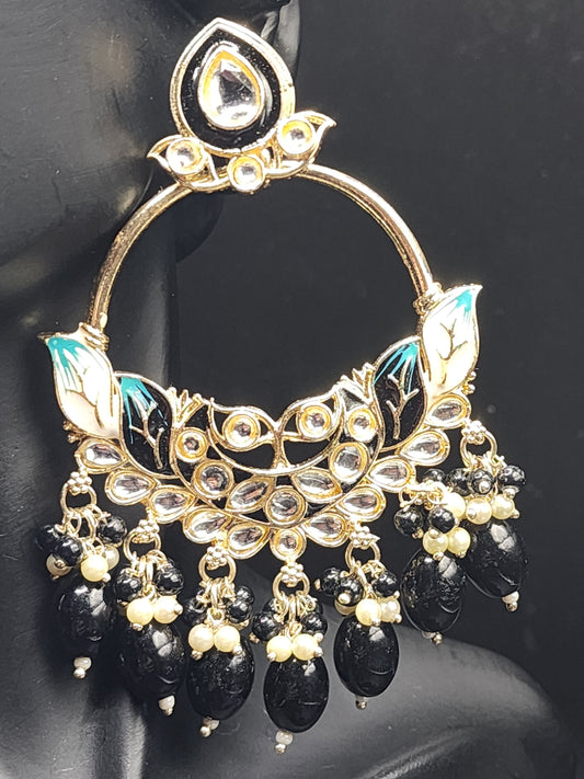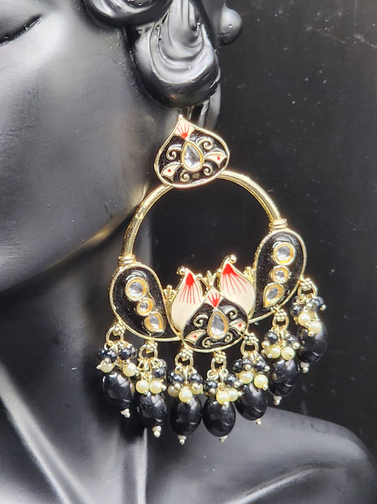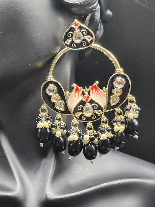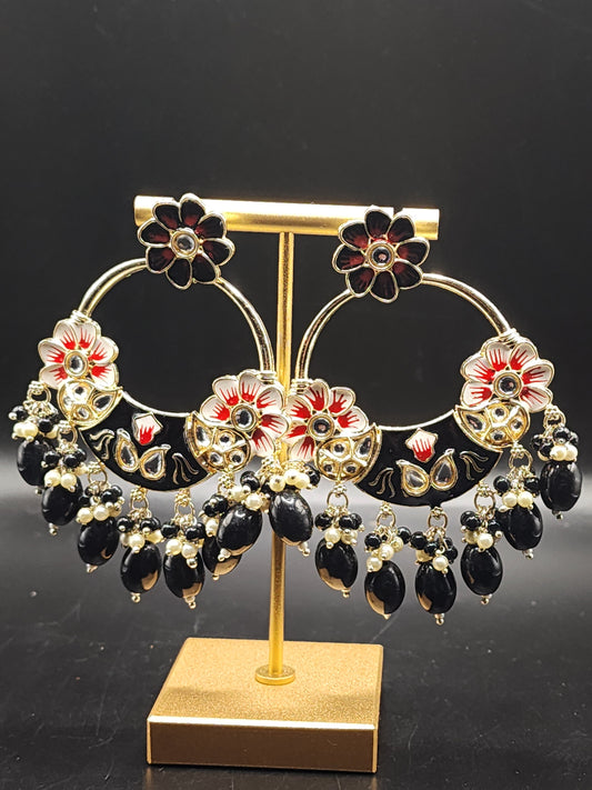 Black Meenakari Statement Hoop Earrings with Pearl & Beaded Drops – Elegant Luxe