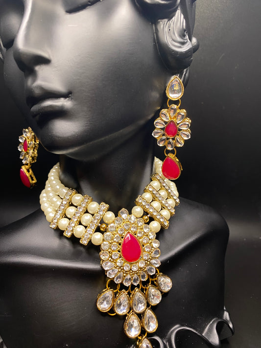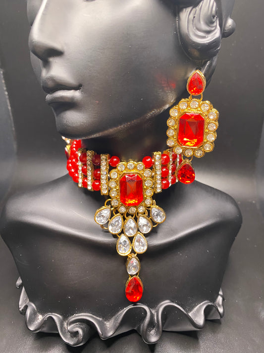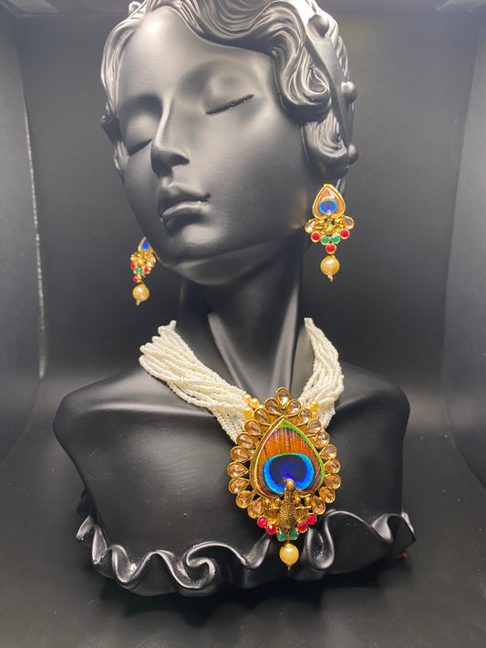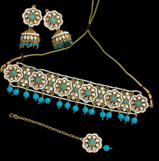 Bold Light Blue Necklace, Earrings, Tikka Set